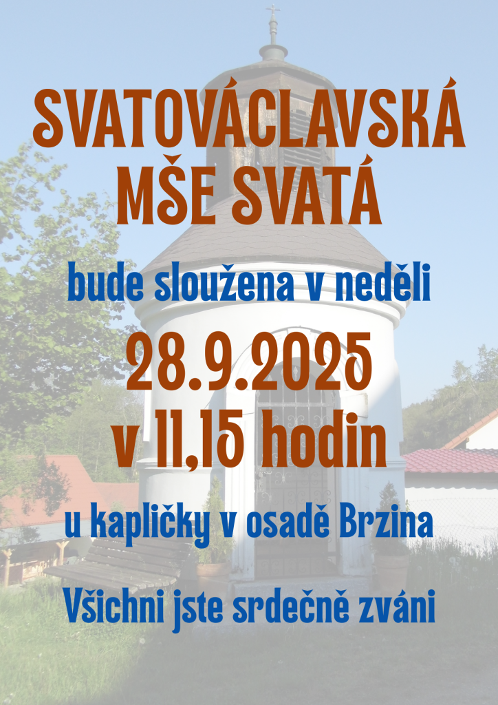 Srdečně vás zveme na Svatováclavskou mši svatou, která se uskuteční v neděli 29. září 2025. Mše bude sloužena v 11:15 hodin a přivítáme vás u kapličky v osadě Brsina. Tato akce je otevřená pro všechny, kteří chtějí oslavit svátek svatého Václava a strávit čas v komunitě.
